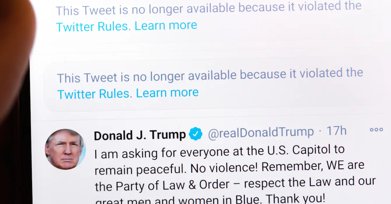 Defense of democracy, notably, was among the reasons Twitter cited in a January blog post explaining its Trump ban.